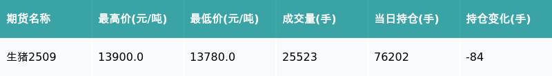 南财智讯6月20日电,南财金融终端盘后期货数据显示牛金宝配资,大连商品交易所的生猪主力合约收涨0.91%,收盘报13895.0元/吨,日内资金流入2337.65万元。其他相关指标见下表: