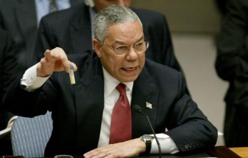 美国前国务卿鲍威尔指控伊拉克拥有"大规模杀伤性武器"的名场面投牛策略